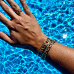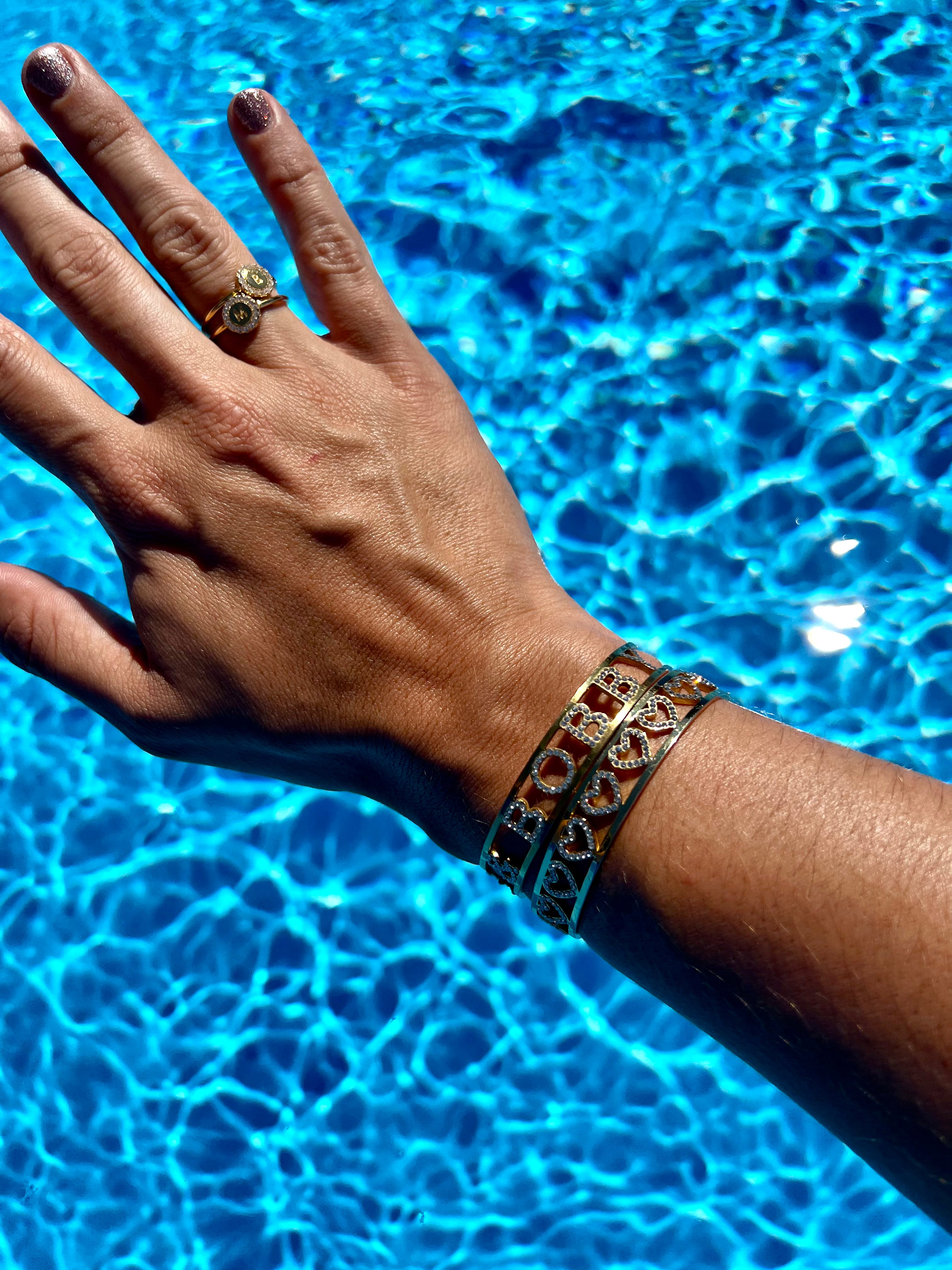 Al ons sieraden zijn gemaakt met een laagje goud. Omdat het laagje eraf kan slijten met douchen of dof kan worden, raden wij het af om dit te doen. Het laagje goud is ook niet bestand tegen crèmes, parfum, water. Probeer te voorkomen dat je sieraad tijdens het dragen hiermee in contact komt.