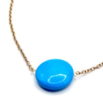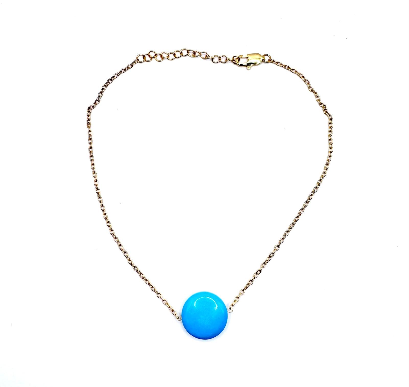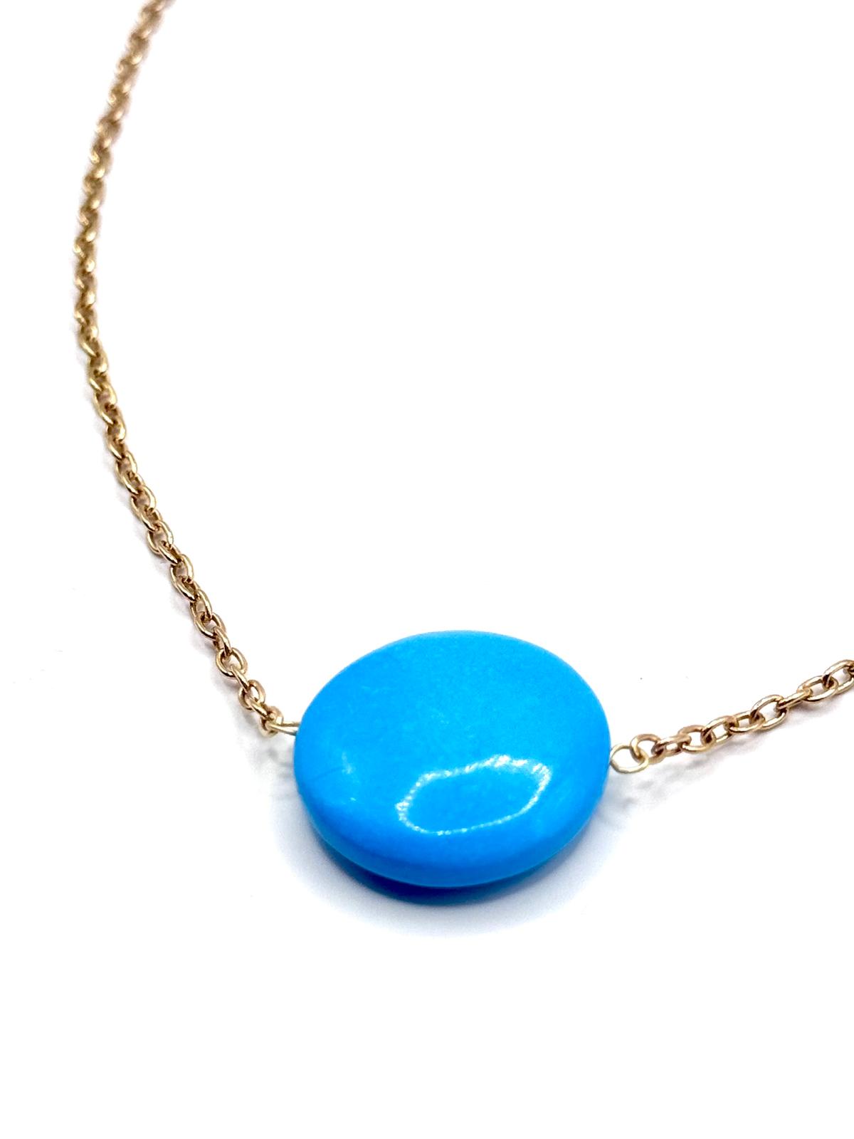 Deze verfijnde ketting, gemaakt van 3 micron gold plated brass, straalt een warme en luxueuze gloed uit. De hanger van echte turkoois natuursteen voegt een speels en elegant accent toe, terwijl de diepe blauwe tint symbool staat voor bescherming, balans en positieve energie.